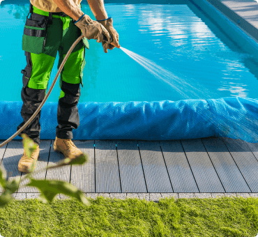 High-pressure cleaning to restore your pool deck's original beauty and safety.